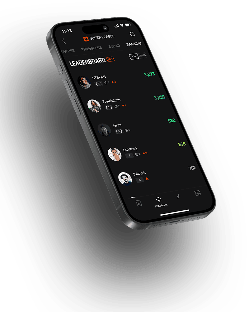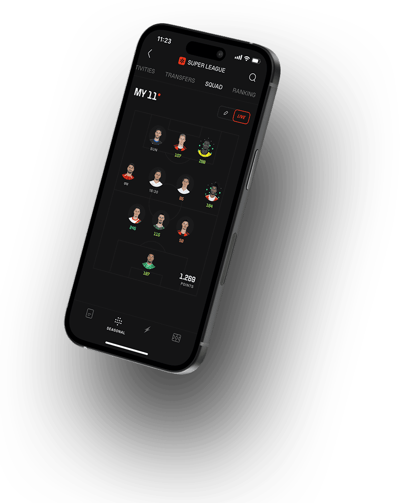 As if the matchday wasn’t already intense enough, we spice things up with live points. Choose your squad wisely and watch your players collect points in real-time. For every action. Every second. Live.