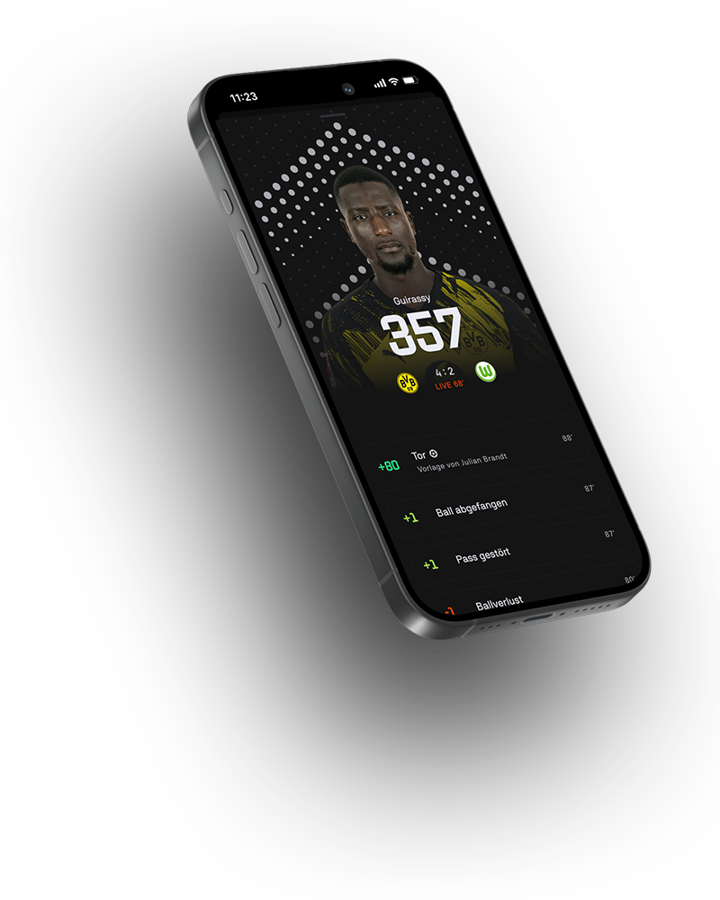 Als wäre der Spieltag nicht schon aufbrausend genug, geben wir mit Livepunkten zusätzlich Würze hinzu. Wähle deinen Kader daher weise und siehe dabei zu, wie deine Spieler:innen in Echtzeit Punkte sammeln. Für jede Aktion. Jede Sekunde. Live.